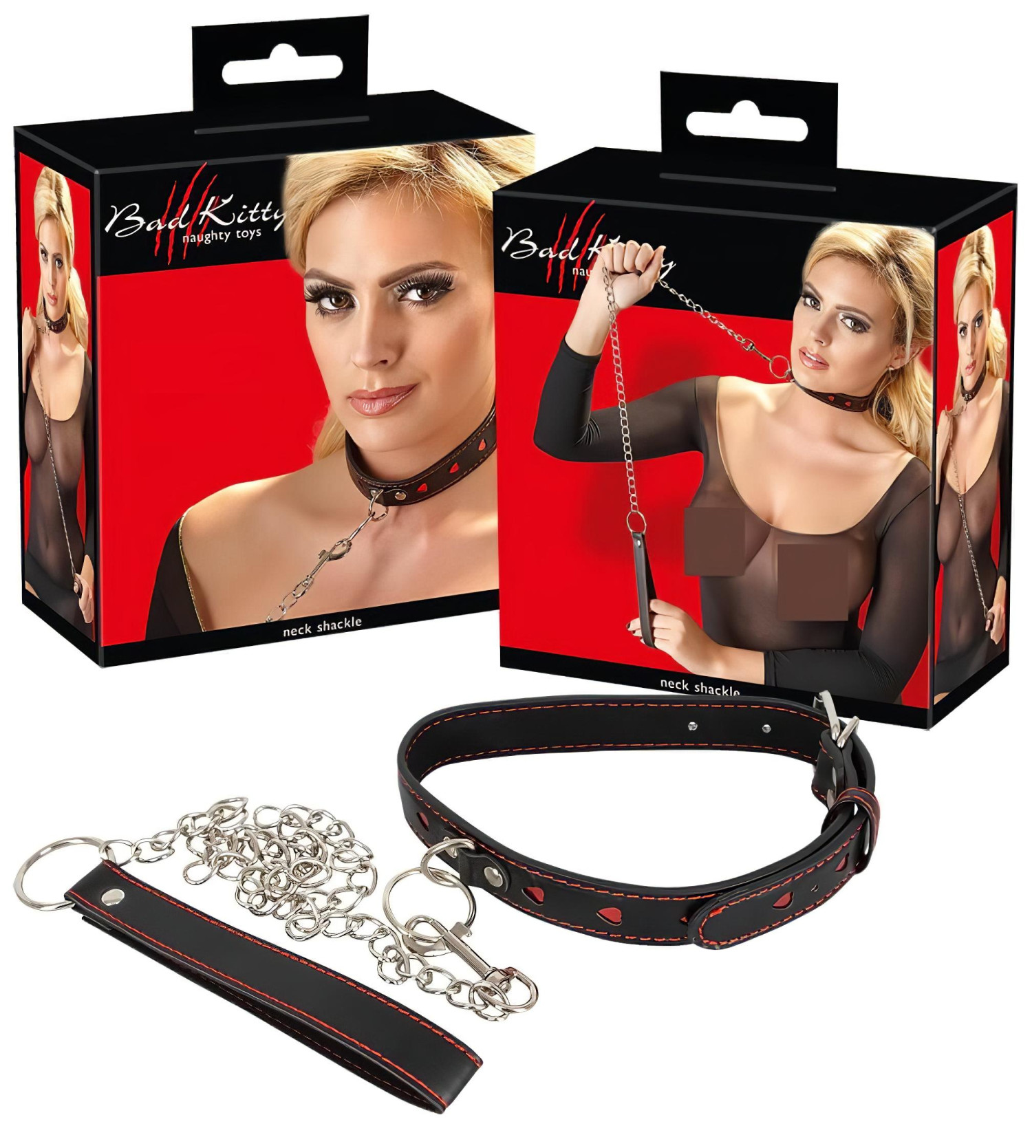 Recenze Bad Kitty - obojek se srdíčky a kovovým vodítkem (černý)