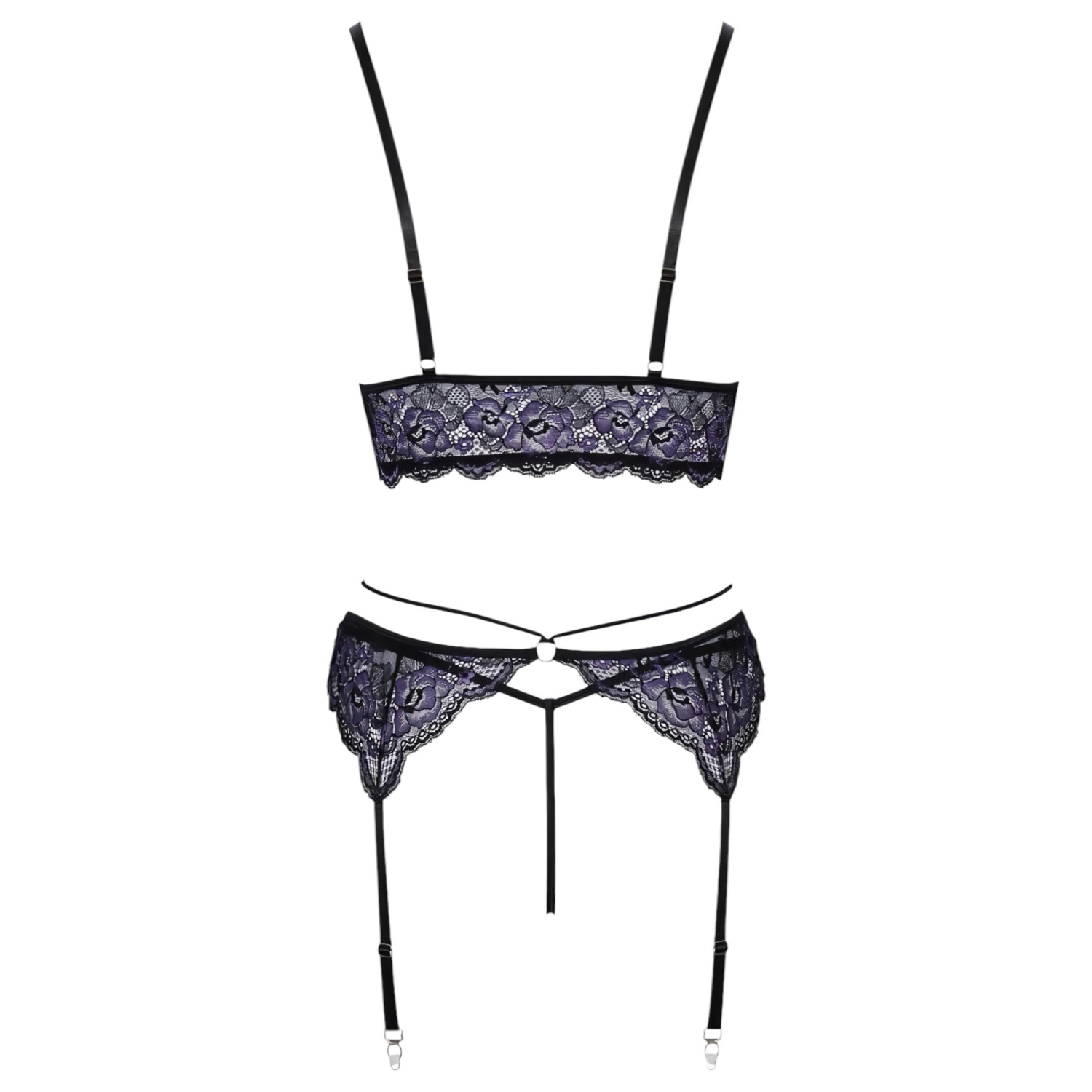 Cottelli - 3dílná krajková sada spodního prádla (černá-fialová) - L