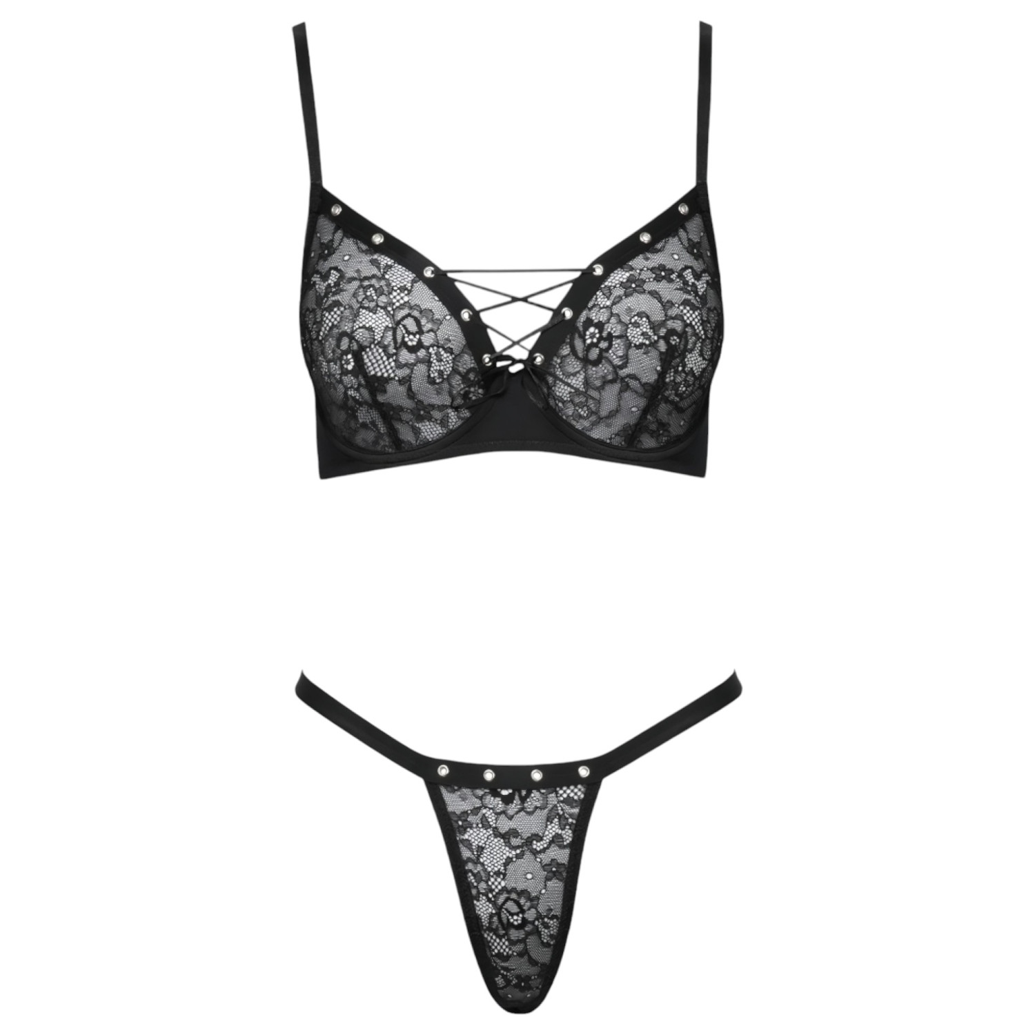 Cottelli Party - šněrovací podprsenkový set (černý) - 85C/L