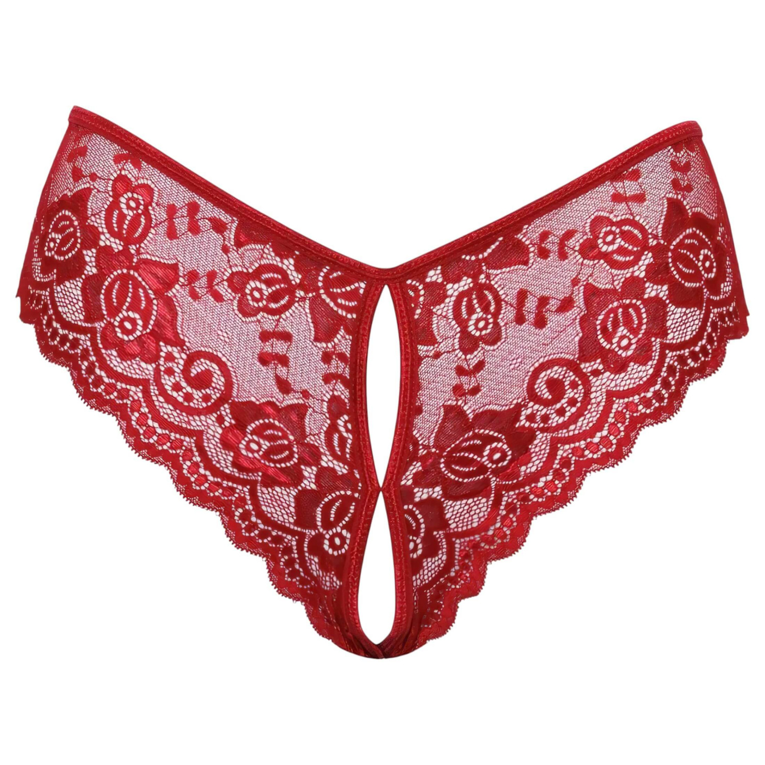 Recenze Cottelli - otevřené krajkové kalhotky (červené) - XL
