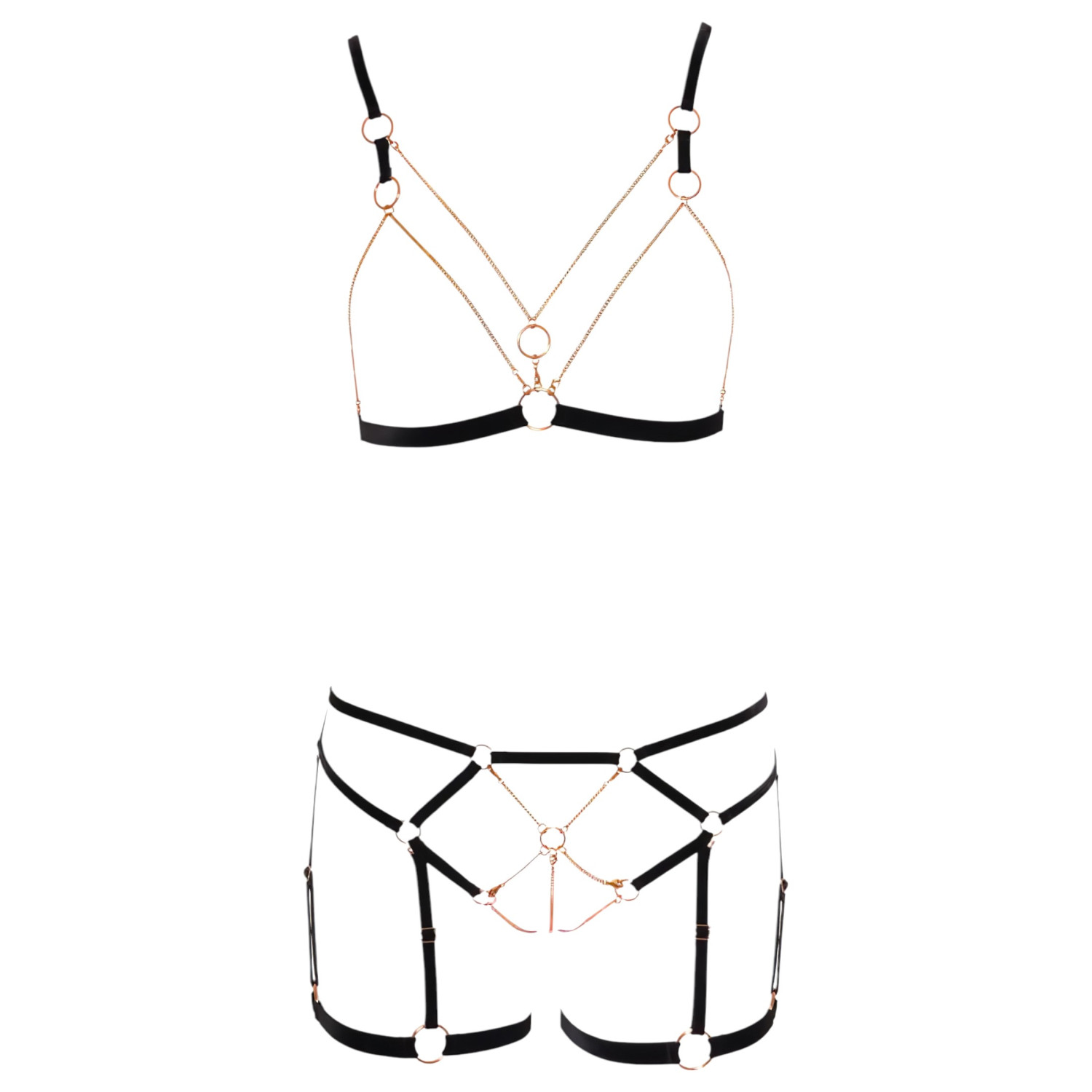 • Řetízky vedou přes stydkou kost a mezi prsy, zakončené kroužkem