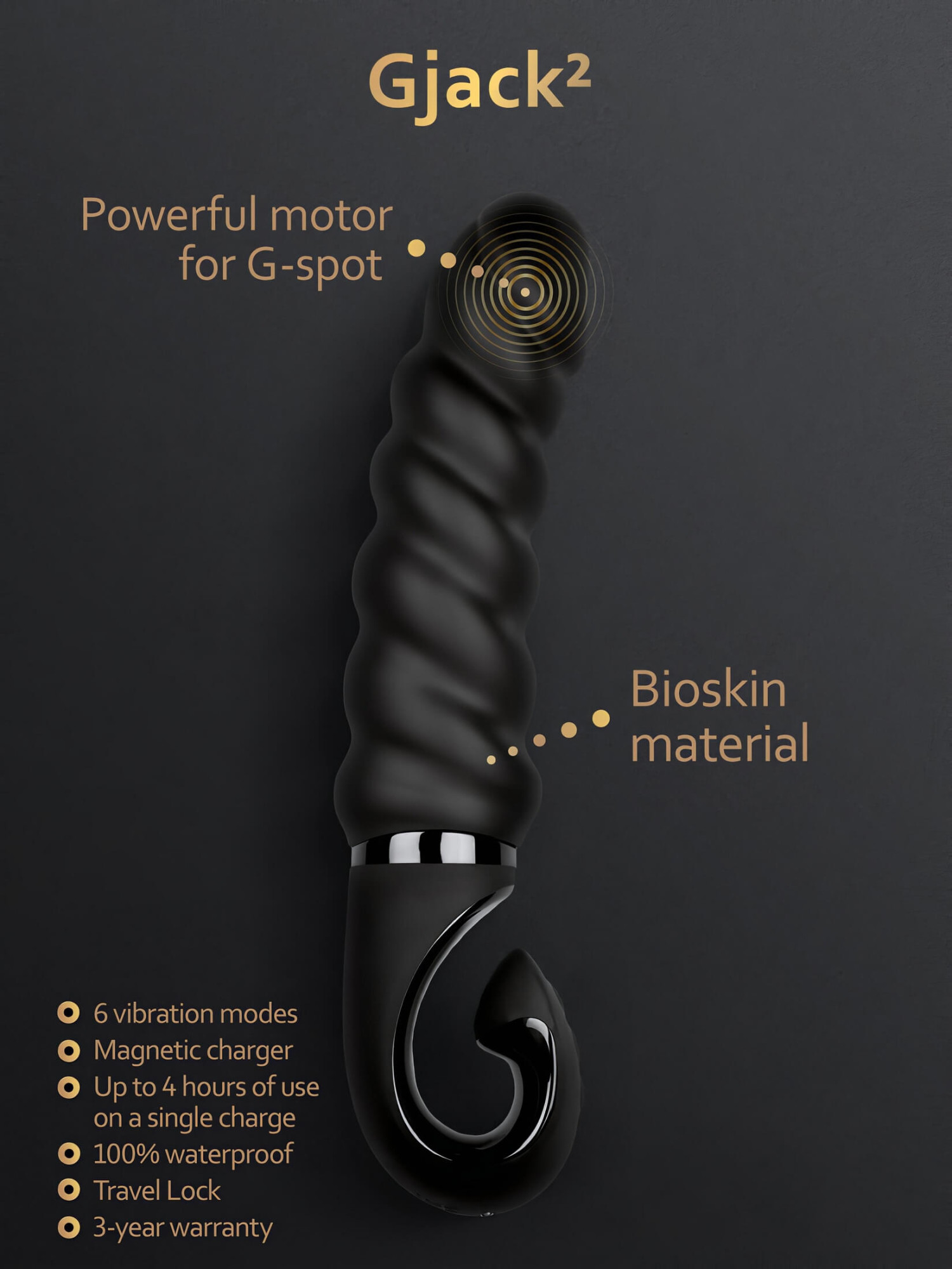 Gvibe G-jack 2 - akumulátorový, vodotěsný silikonový vibrátor (černý)