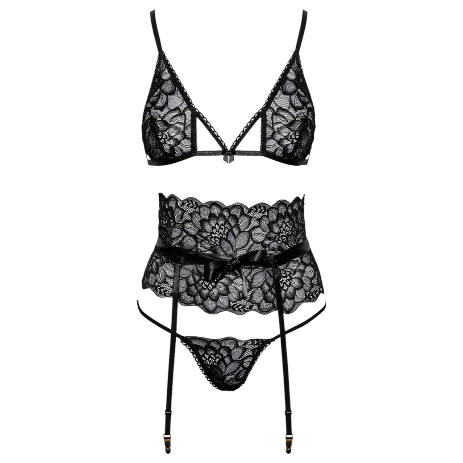 Kissable - Set s páskovou podprsenkou (černá)