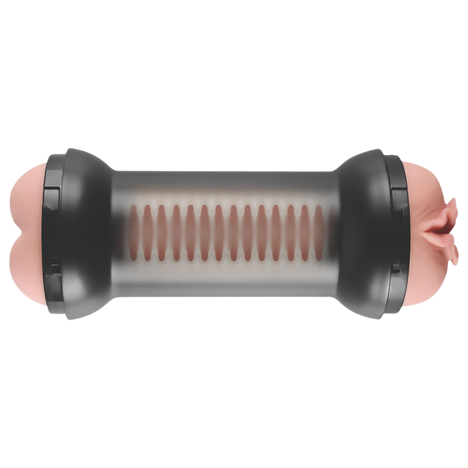 Tento 2 v 1 masturbátor pro muže má dva různé otvory: jeden simuluje vagínu, druhý anál, takže můžeš dle nálady měnit zážitek. Vnitřní žebrovaná, stimulační textura poskytuje intenzivní potěšení a pomáhá dosáhnout hlubokého, uspokojujícího orgasmu. Flexibilní, tělu přátelský TPE materiál zajišťuje pocit podobný kůži a díky praktickému designu je snadno čistitelný - ideální volba pro každodenní použití nebo trénink.