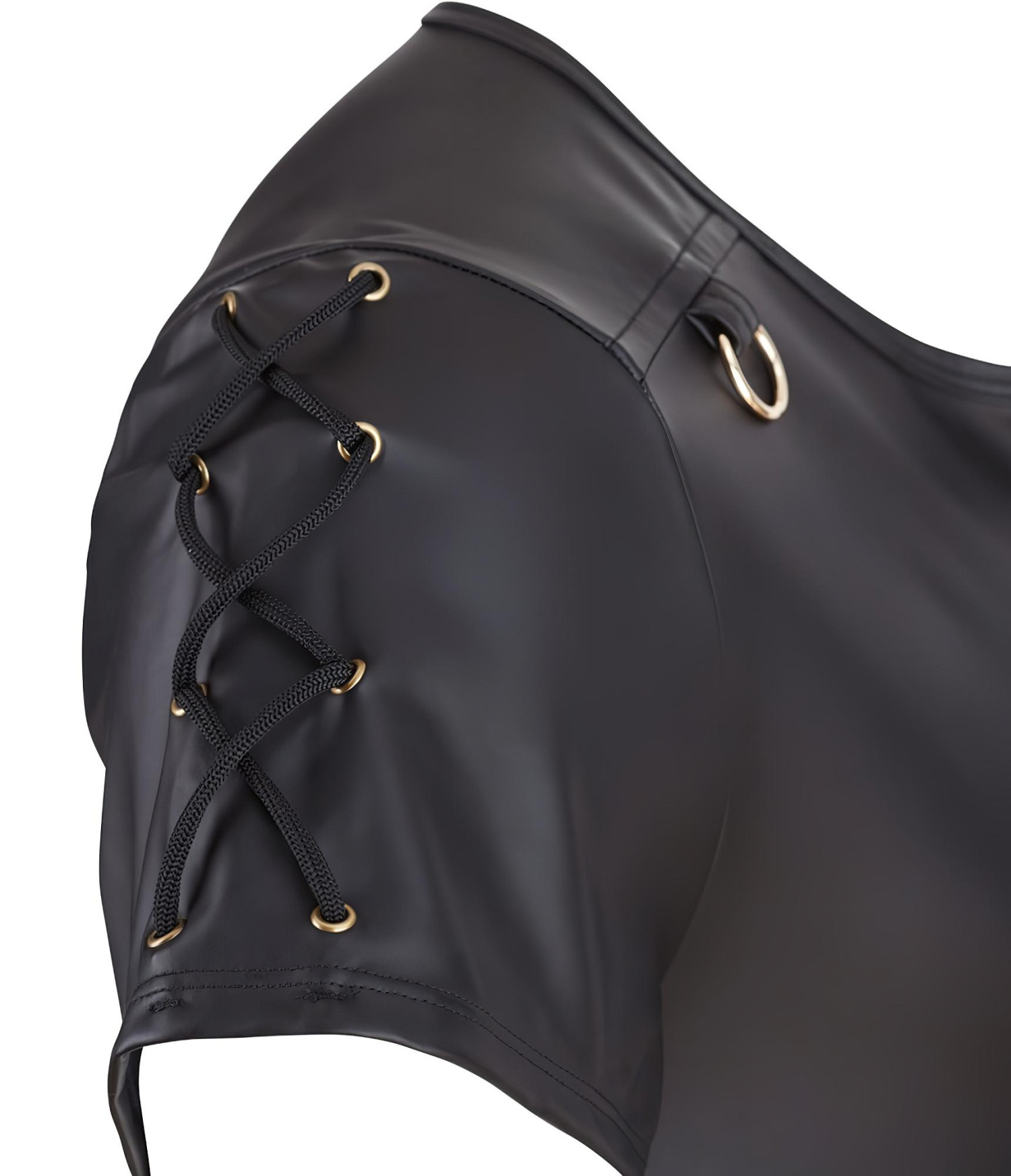 • Sexy detaily: Kovové D-kroužky v barvě růžového zlata, zip a šněrování na ramenou přitahují každé oko.