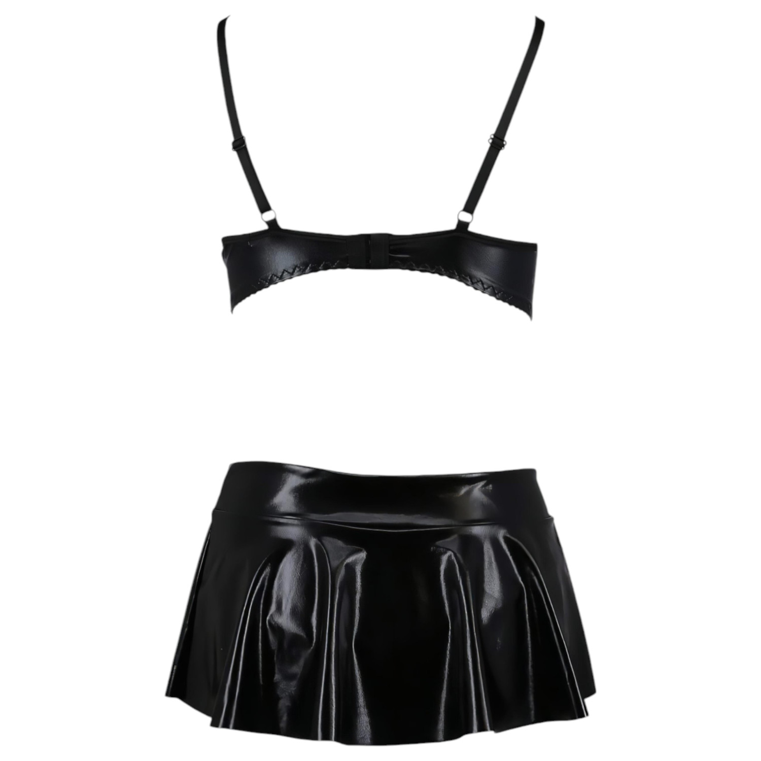 Svůdná dámská sada oblečků z lesklého materiálu s mokrým efektem.