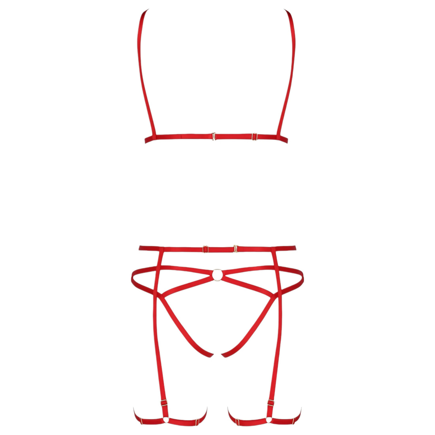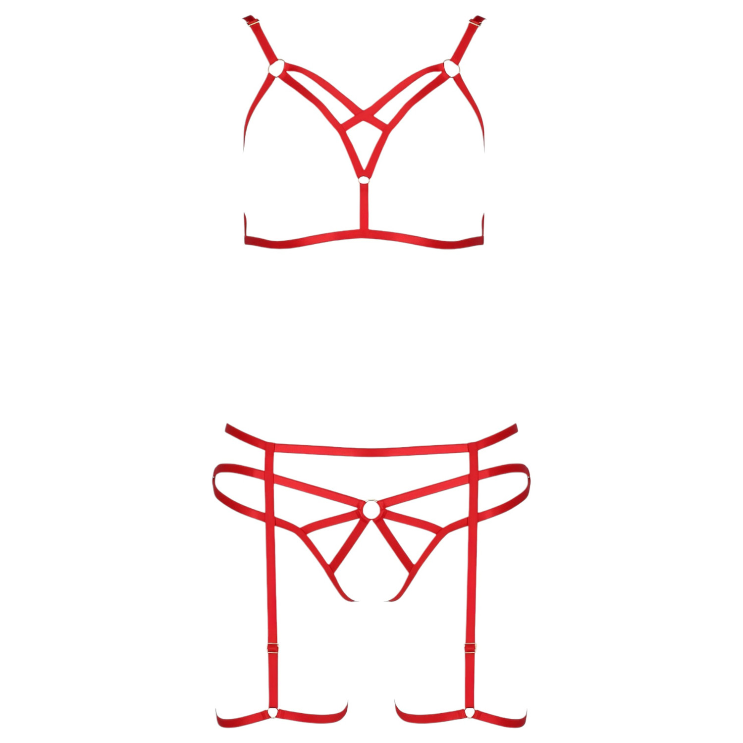 Passion Magali - ozdobný tělový postroj set - 3dílný (červený)