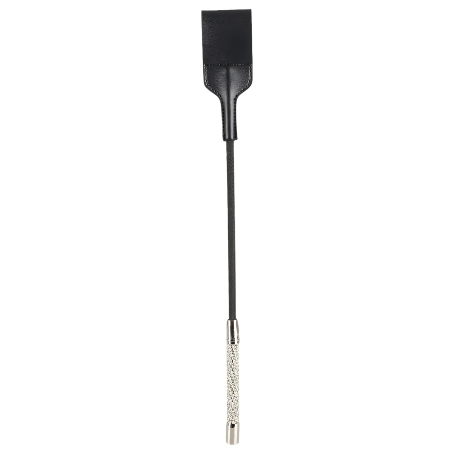Pevný, pálivý plácačka ze dvouvrstvé kůže s výjimečným zakončením, jehož rukojeť je po celém obvodu ozdobena bílými, třpytivými kamínky jako pravý šperk.