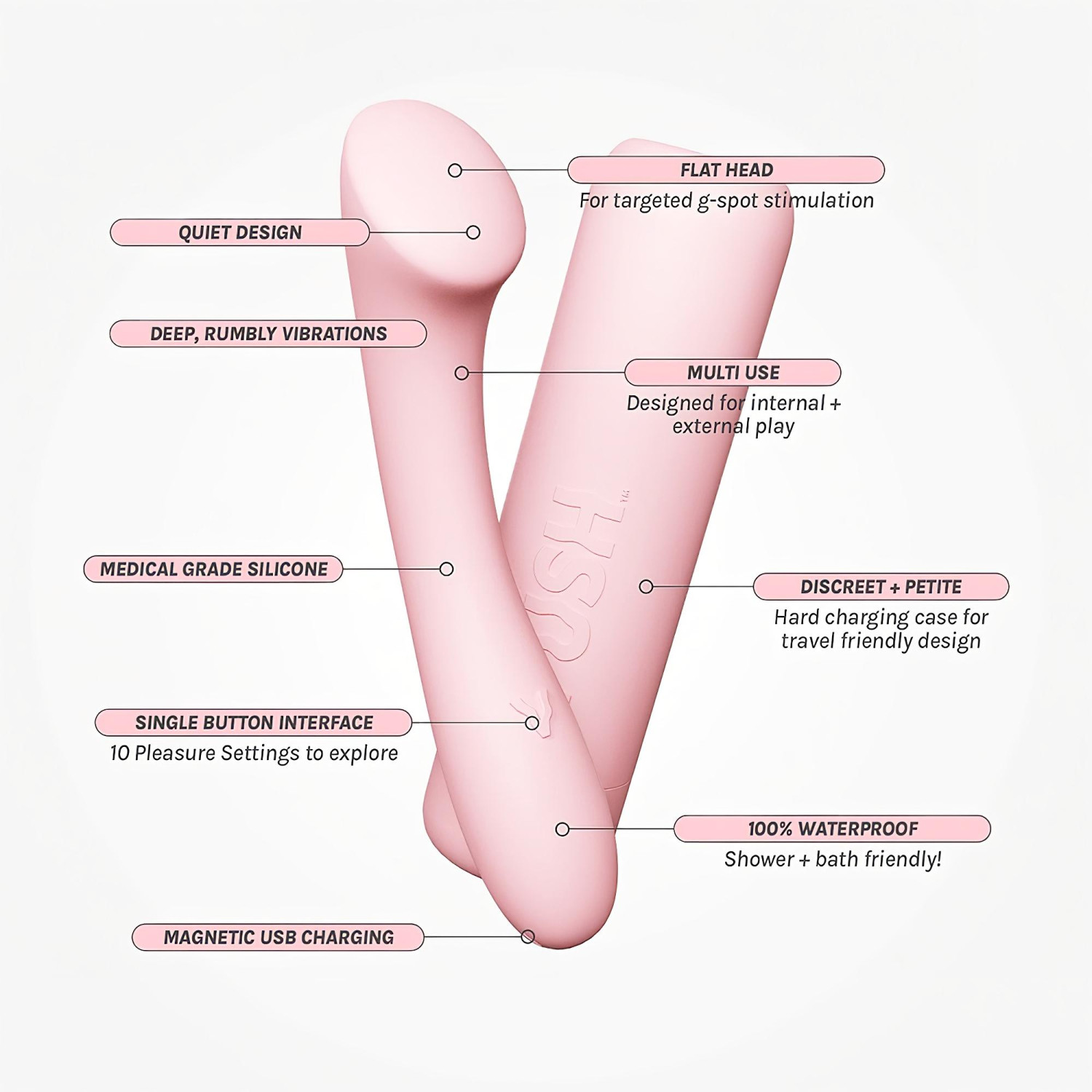 Vush Pop Shine - akumulátorový, vodotěsný G-bod vibrátor (růžový)