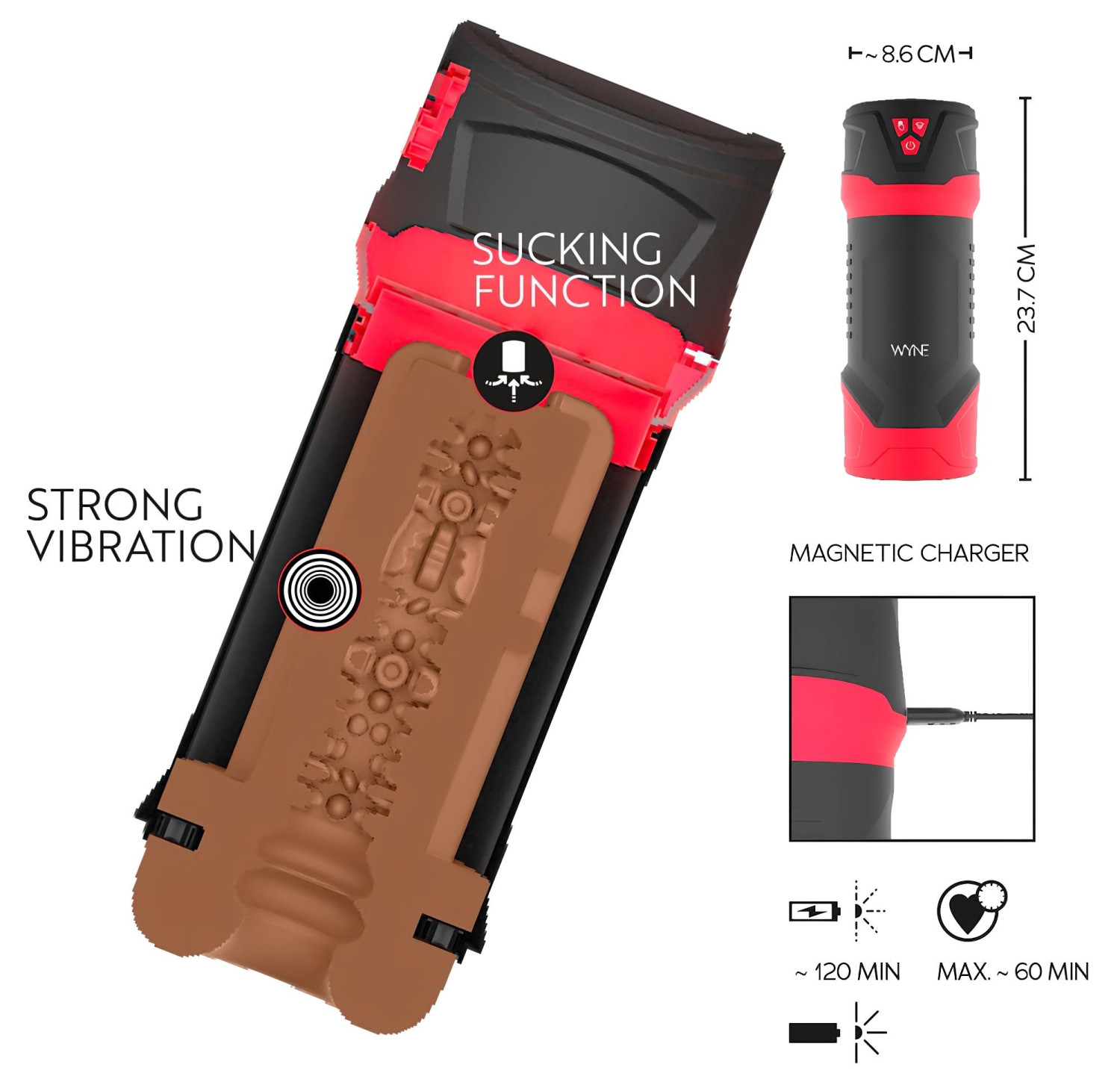 Podívej se na video s představením WYNE 04 - akumulátorový, vibrační a sací masturbátor (černo-červený)!